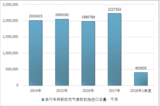 2016年我國自行車用新的充氣橡膠輪胎進口總量1980789千克,2017年進口總量2227262千克;2018年1季度進口總量403935千克。