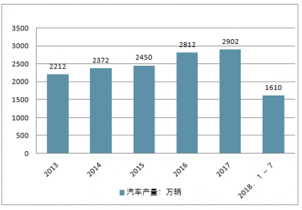 2009年, 我國汽車產(chǎn)量首次突破千萬輛, 以1379萬輛的記錄排名全球第.一。 隨后, 我國汽車產(chǎn)量保持逐年增長(zhǎng)。 2017年, 中國汽車產(chǎn)銷分別完成2901.5萬輛和2887.9萬輛, 同比分別增長(zhǎng)3.2%和3%, 為近十年最高值。2019年以來, 中國汽車產(chǎn)量同樣保持增長(zhǎng), 1-7月, 汽車產(chǎn)量完成1610萬輛, 比上年同期增長(zhǎng)3.5%。