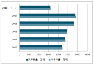 2017年, 中國汽車銷量為2887.9萬輛,同比增長3%, 為近十年最高值, 同時也是連續(xù)九年蟬聯(lián)全球第.一。2019年以來, 汽車產(chǎn)銷繼續(xù)保持小幅增長,產(chǎn)量增速比上年同期有所回落, 銷量增速微升。1-7月, 汽車銷量完成1595.5萬輛, 比上年同期增長4.3%, 銷量增速高于上年同期0.2個百分點(diǎn)。