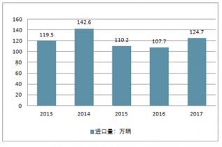2013-2017年中國汽車整車進(jìn)口量走勢