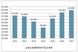 2011-2017年中國自主品牌乘用車市場占有率走勢
