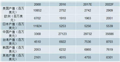 全球各區(qū) PCB 產(chǎn)值及預(yù)測(cè)