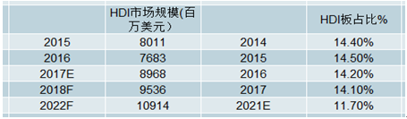 HDI市場規(guī)模及占比情況走勢