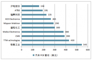 2017 年全球前 10 大汽車 PCB 營收情況