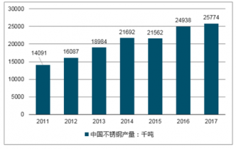 2011-2017年中國(guó)不銹鋼產(chǎn)量走勢(shì)圖(千噸)