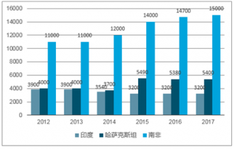南非是世界最大的鉻生產(chǎn)國(guó),根據(jù)美國(guó)地質(zhì)局統(tǒng)計(jì)數(shù)據(jù),2017年南非鉻產(chǎn)量為1500萬(wàn)噸,其次是哈薩克斯坦540萬(wàn)噸,印度產(chǎn)量320萬(wàn)噸。