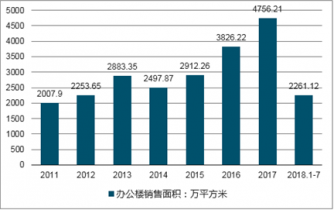 2016年我國辦公樓銷售面積為3826.22萬平方米,2017年我國辦公樓銷售面積為4756.21萬平方米,銷售面積同比增長24.31%。2019年1~7月,我國辦公樓銷售面積為2261.12萬平方米。