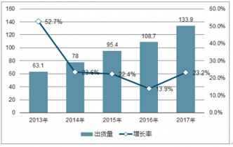 2013-2017年中國香水網(wǎng)購市場交易規(guī)模(億元)