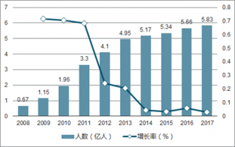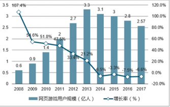 2008-2017年中國(guó)網(wǎng)頁(yè)游戲用戶(hù)規(guī)模及增速