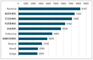 2017年全球TOP10抗腫瘤藥物銷量金額圖(億美元)