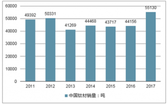 2011-2017年中國鈦材銷量(噸)