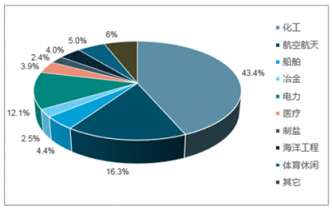 2017年中國鈦材需求領域占比,其中航空航天占比16.3%
