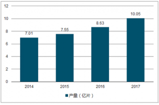 2017年我國隱形眼鏡產(chǎn)量約10.05億片,同比2016年的8.63億片增長了16.45%。
