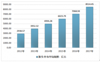 2012-2017年中國服務(wù)外包行業(yè)市場規(guī)模情況