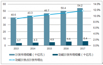 2013-2017年中國沙發(fā)及功能沙發(fā)市場規(guī)模 (十億元)