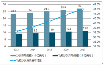 2013-2017年美國沙發(fā)及功能沙發(fā)市場規(guī)模 (十億美元)