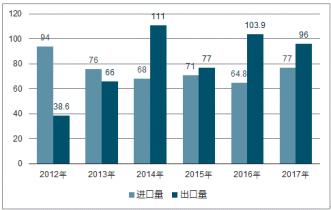2012-2017年中國聚氯乙烯進(jìn)出口量分析