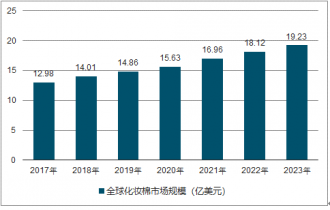 2017-2023年全球化妝棉市場規模走勢圖(億美元)