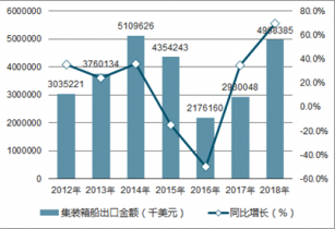 2012-2018年中國集裝箱船出口金額統計圖