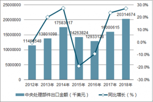 2012-2018年中國中央處理部件出口金額統計圖