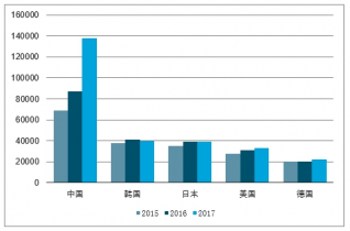2017年全球機器人市場規(guī)模已達500億美元。2017年全球工業(yè)機器人的總銷量達38萬臺,同比增長29%。中國自2013年以后一直是全球最大的工業(yè)機器人市場。 2017年,中國的工業(yè)機器人銷量達13.8萬臺,其次是韓國約4萬臺,日本約有3.8萬臺。在美洲,美國是最大的單一市場,銷售了約3.3萬臺工業(yè)機器人。在歐洲,德國則售出了約2.2萬臺。中、韓、日、美、德五國2017年工業(yè)機器人銷量占全球總銷量71%。