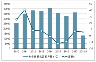 2010-2018年5月中國電子計算機(jī)整機(jī)產(chǎn)量及增長走勢