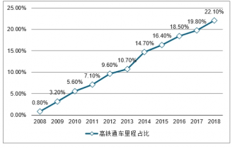 2018 年高鐵通車(chē)?yán)锍陶急忍嵘?22.1%