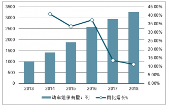 2013-2018年全國(guó)動(dòng)車(chē)組保有量及增速(單位:列,%)
