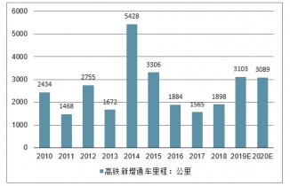 2010-2020年我國高鐵新增通車里程數(shù)據(jù)