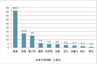 2017年部分國(guó)家電子煙消費(fèi)情況(單位:億美元)