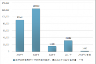 圖表:2014-2018年中國用膠合板等制的針葉木飾面用單板進口數(shù)據(jù)