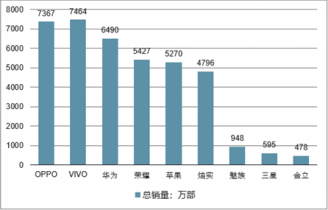 2018年全年,中國智能手機整體市場容量仍處于下滑趨勢。OPPO不負眾望的拿下了全年銷量第.一的頭把交椅,OPPO18年全面出貨量為7637w部,而它的孿生兄弟也緊跟其后,vivo18nian全滿出貨7464w部排在了第二名,華為和榮耀以6490萬和5427萬分列第三四位,同時分別實現了29%和13%的同比兩位數的增長;蘋果以5270萬位居第五,同比下滑5%;小米同比增長7%,以4796萬位列第六。