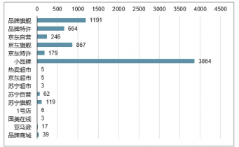2019年網(wǎng)站數(shù)據(jù)庫共收錄網(wǎng)店6963家,其中小品牌網(wǎng)店的網(wǎng)店占總比最多,達(dá)到3864家,其次為品牌旗艦店(品牌直銷),收錄網(wǎng)店為1191家,京東旗艦店收錄網(wǎng)店為867家,熱賣特許店收錄網(wǎng)店為664家,京東自營收錄網(wǎng)店為246家,京東特許店收錄網(wǎng)店為179家,1號店收錄網(wǎng)店為119家,蘇寧旗艦店收錄網(wǎng)店為62家,品牌商城收錄網(wǎng)店為39家,當(dāng)當(dāng)網(wǎng)收錄網(wǎng)店為17家,國美在線收錄網(wǎng)店為6家,熱賣超市收錄網(wǎng)店為5家,京東超市收錄網(wǎng)店為5家,蘇寧自營收錄網(wǎng)店為3家,亞馬遜收錄網(wǎng)店為3家。