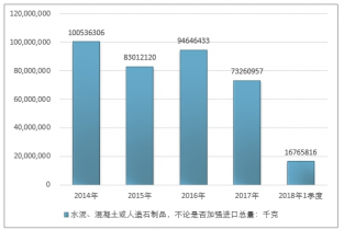 2016年我國水泥、混凝土或人造石制品,不論是否加強進口總量94646433千克 ,2017年進口總量73260957千克 ;2019年1季度進口總量16765816千克 。