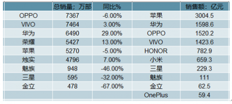 2018年全年,中國智能手機整體市場容量仍處于下滑趨勢。2018年全年,中國智能手機整體市場容量仍處于下滑趨勢。OPPO不負眾望的拿下了全年銷量第.一的頭把交椅,OPPO18年全面出貨量為7637w部,而它的孿生兄弟也緊跟其后,vivo18nian全滿出貨7464w部排在了第二名,華為和榮耀以6490萬和5427萬分列第三四位,同時分別實現(xiàn)了29%和13%的同比兩位數(shù)的增長;蘋果以5270萬位居第五,同比下滑5%;小米同比增長7%,以4796萬位列第六。