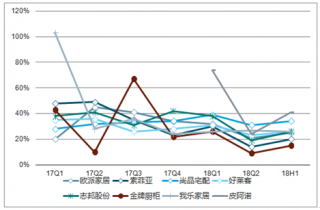 分季度看,代表性家居企業(yè)18Q1/18Q2分別實現(xiàn)營收103/145億元,同比分別增長35%/24%,二季度營收增速普遍放緩,地產(chǎn)端壓力與行業(yè)競爭壓力影響逐步顯現(xiàn)。