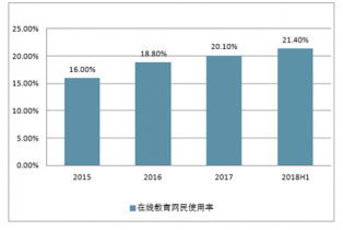 互聯(lián)網(wǎng)為教育的改革與發(fā)展提供了強大的動力,推動了教育從前工業(yè)社會到后工業(yè)社會的邁進,加快了教育的信息化進程。近年來,在線教育網(wǎng)民使用率不斷提高,2018年上半年,中國在線教育網(wǎng)民使用率達到21.40%,手機在線教育網(wǎng)民使用率達到18.10%。