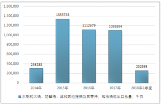 2016年我國木制的大桶、琵琶桶、盆和其他箍桶及其零件,包括桶板出口總量1112679千克,2017年出口總量1093894千克;2018年1季度出口總量252598千克。