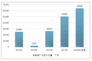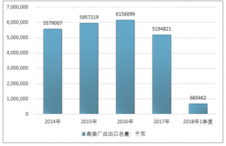 2016年我國桑蠶長絲進(jìn)出口貿(mào)易總量6182250千克,2017年進(jìn)出口貿(mào)易總量5245171千克;2018年1季度進(jìn)出口貿(mào)易總量747120千克。