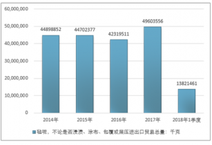 2016年我國氈呢,不論是否浸漬、涂布、包覆或?qū)訅哼M(jìn)出口貿(mào)易總量42319511千克,2017年進(jìn)出口貿(mào)易總量49603556千克;2018年1季度進(jìn)出口貿(mào)易總量13821461千克。