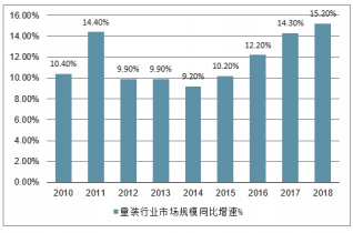 2010-2018年中國(guó)童裝行業(yè)市場(chǎng)規(guī)模同比增長(zhǎng)走勢(shì)