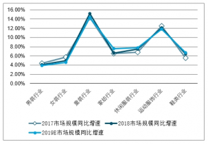 2017-2019年中國紡織服裝細(xì)分行業(yè)市場規(guī)模增速呈現(xiàn)分化
