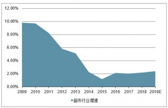 2009-2019年中國(guó)超市行業(yè)增速情況