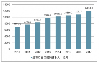 2010-2017年我國超市行業(yè)百強(qiáng)規(guī)模走勢