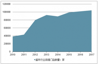 2010-2017年我國超市行業(yè)百強門店數(shù)量走勢