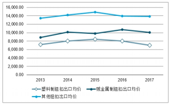 2013-2017年我國(guó)紐扣出口均價(jià)走勢(shì)(單位:美元/噸)