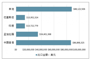 2017年我國賤金屬制鈕扣分地區(qū)出口金額情況