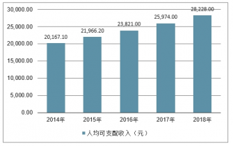 2014-2018我國居民可支配收入走勢