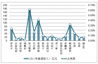 2016-2017年中國主要服裝行業(yè)企業(yè)經(jīng)營收入及市占率情況