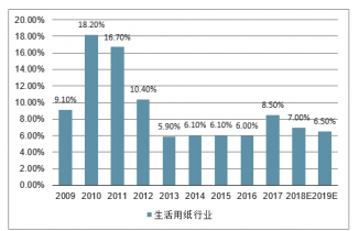 2019年中國(guó)生活用紙行業(yè)市場(chǎng)規(guī)模同比增速